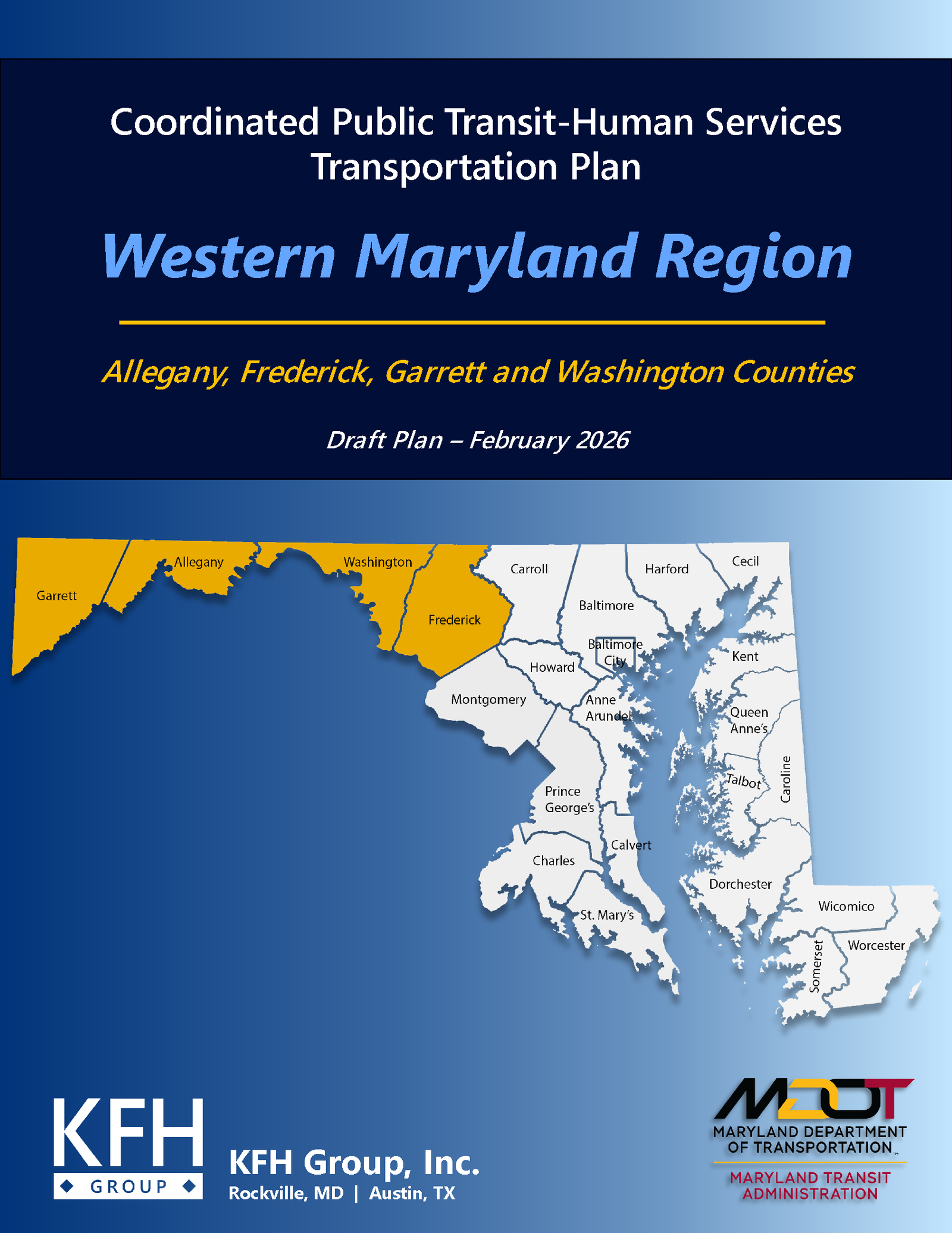 Thank you for your interest in the Coordinated Public Transit-Human Services Transportation Plan for Western Maryland. This regional plan includes Allegany, Frederick, Garrett, and Washington Counties. Input from a wide range of stakeholders like yourself is a key component in this effort.